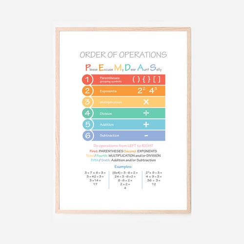 Order of Operations - Math Fun Worksheets Do operations in Parentheses first 2. Exponents 3. Multiplication/ Division (Go from left to right, do whichever operation comes first) 4. Addition/ Subtraction (Go from left to right, do whichever operation comes first) Parentheses→Exponents→Division→Multiplication→Addition→Subtraction. Form an acronym, PEDMAS rule of Operations.